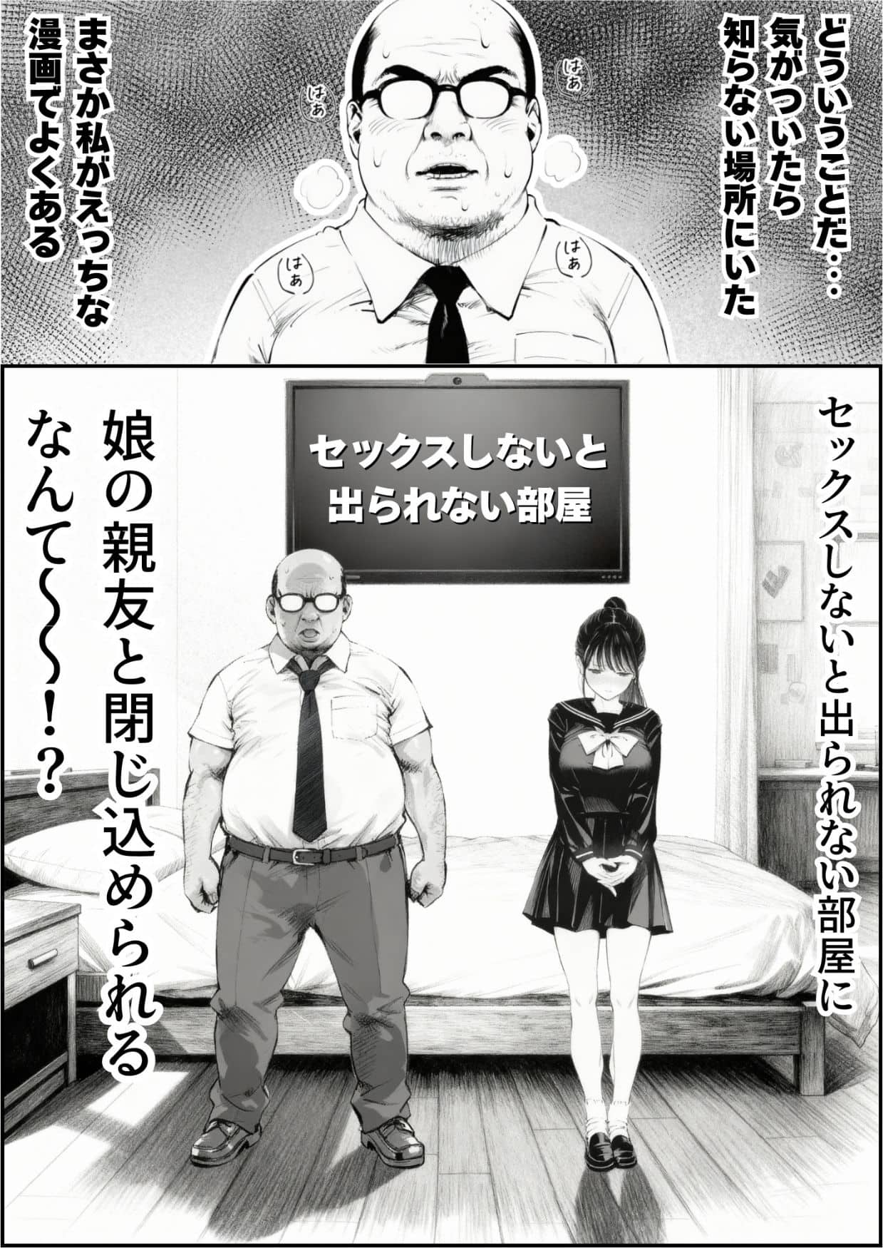 本編フルDL【セックスしないと出られない部屋に娘の親友と閉じ込められたんだが・・・】竿役が種付けおじさんじゃないとヌケないんだが・・・@エロ漫画